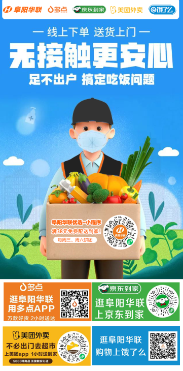 在滿(mǎn)足市民到店采購需求的同時(shí),阜陽(yáng)華聯(lián)各門(mén)店積極向周邊社區提供到家服務(wù),顧客可通過(guò)阜陽(yáng)華聯(lián)優(yōu)選小程序、多點(diǎn)平臺、京東到家、美團外賣(mài)、餓了么等線(xiàn)上平臺下單,門(mén)店員工揀貨、裝袋、打包后,多種舉措確保居民更安全便捷、無(wú)接觸配送購買(mǎi)到家庭生活所需商品。