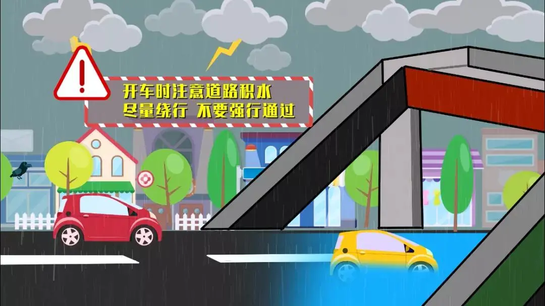 5:開(kāi)車(chē)時(shí)遇到道路或下立交積水過(guò)深時(shí),應盡量繞行,避免強行通過(guò)。