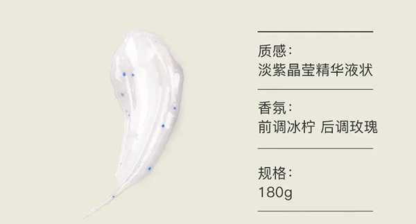 牙膏的膏體是淡紫色精華液狀,里面有些藍色顆粒,布靈布靈的。