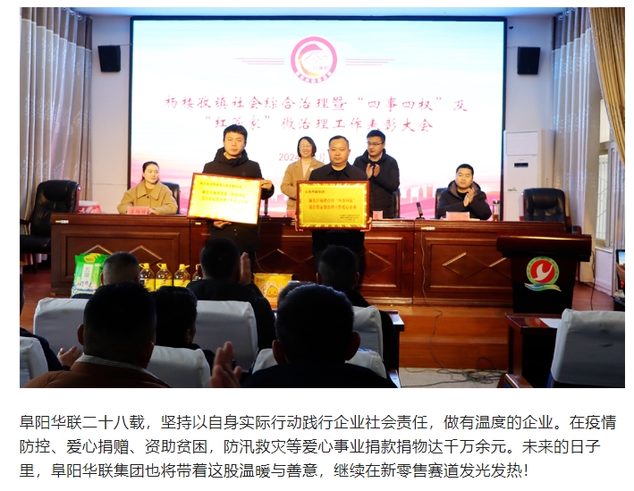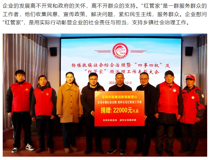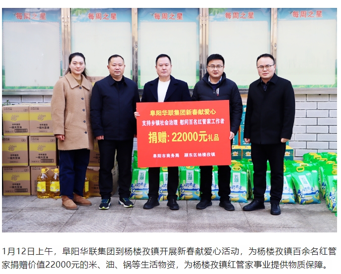 阜陽(yáng)華聯(lián)集團助力楊樓孜鎮“紅管家”,新春獻愛(ài)心捐贈活動(dòng)
