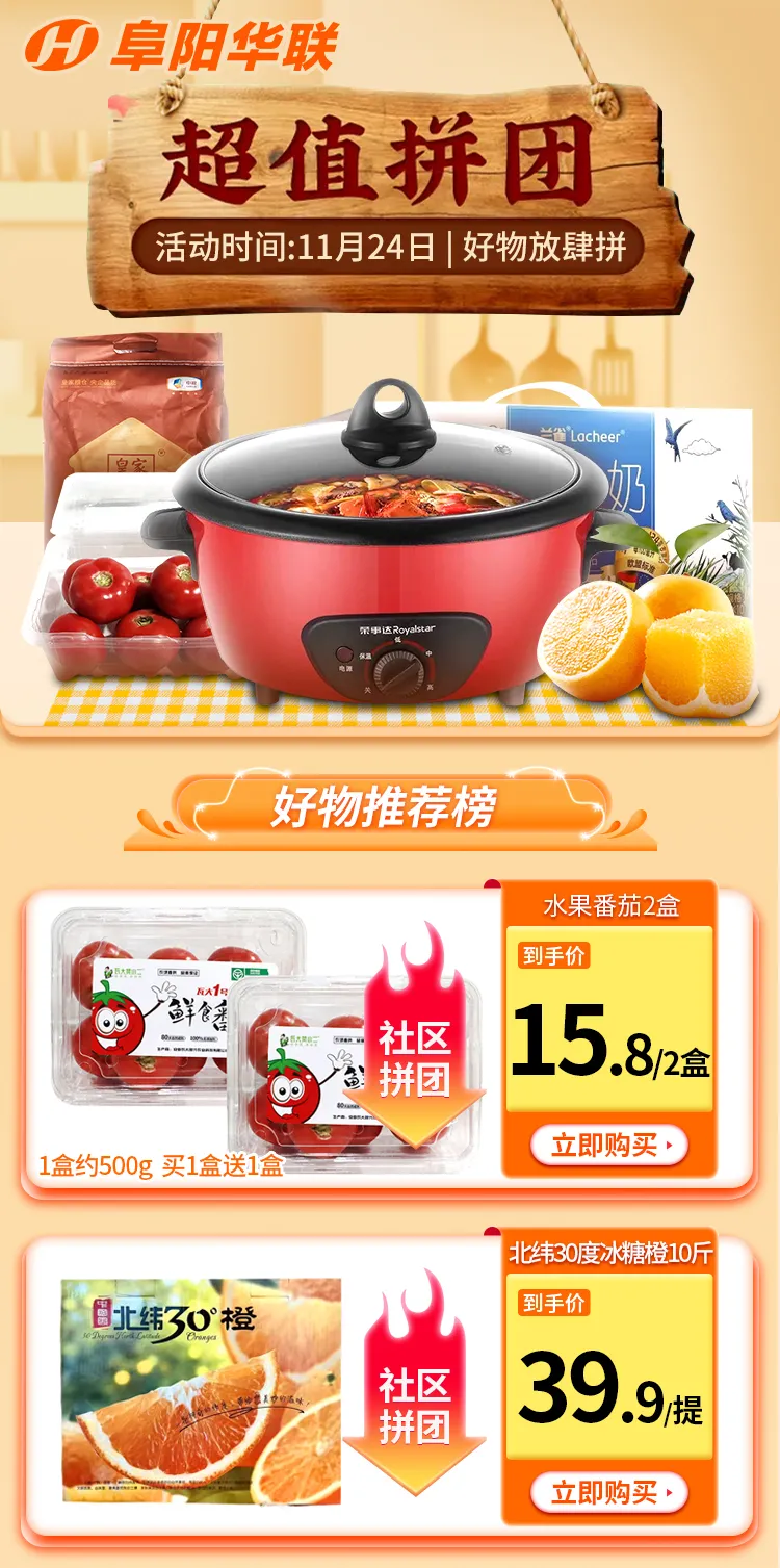 阜陽(yáng)華聯(lián)優(yōu)選 | 第48周拼團,主推>>水果去燥+火鍋暖胃