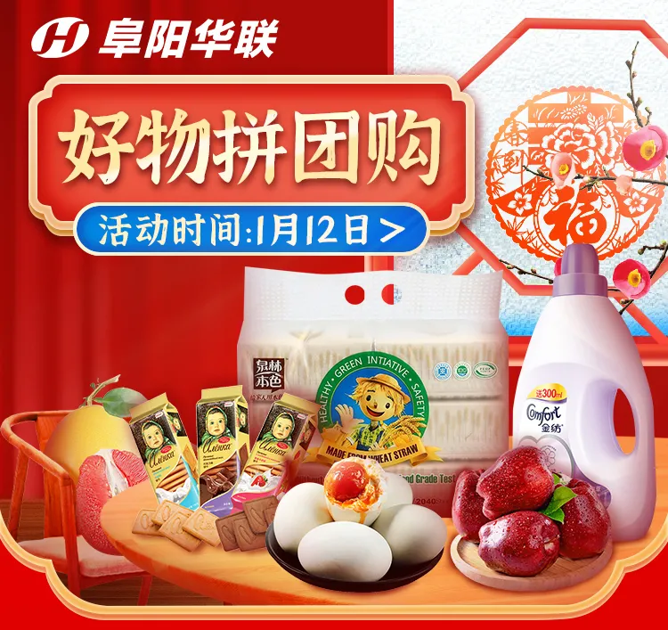 阜陽(yáng)華聯(lián)優(yōu)選 ①·?拼團,主推>>年貨美食、保暖