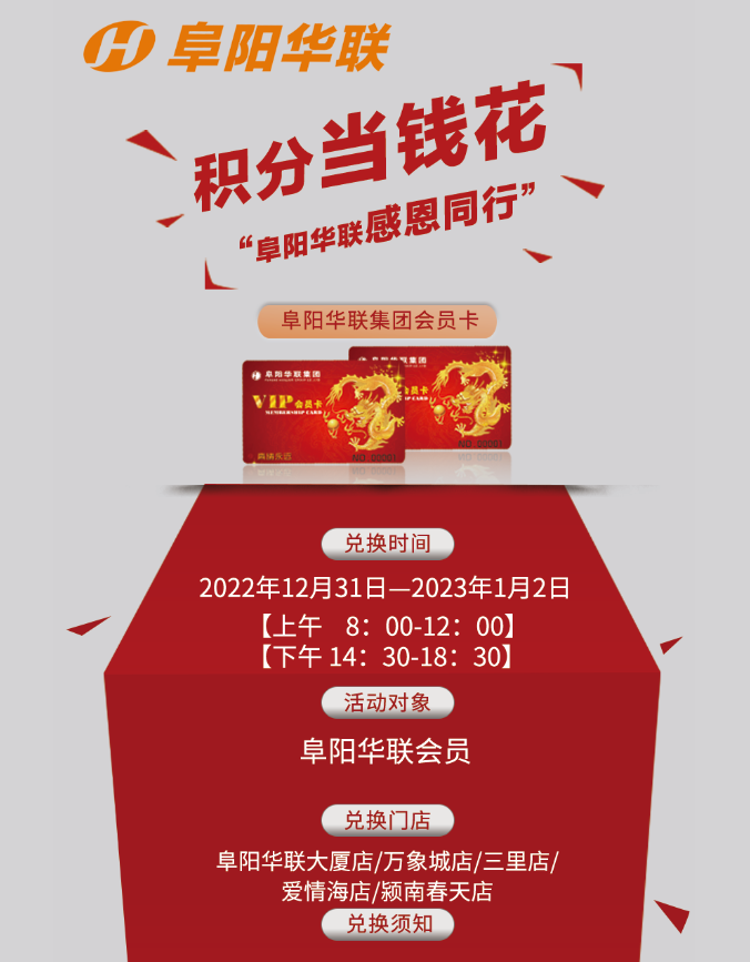@所有會(huì )員,阜陽(yáng)華聯(lián)2023元旦“積分兌禮”已開(kāi)啟!